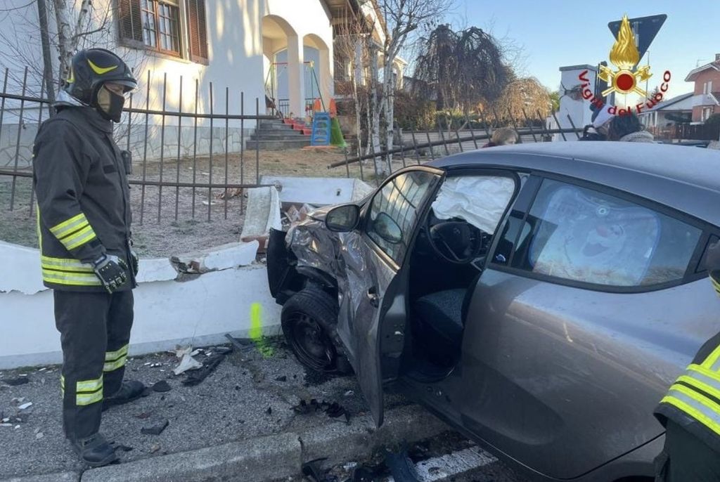 Per cause al vaglio della Polizia locale, due vetture sono entrate in collisione e una di queste è poi finita contro la cancellata di una delle ville della zona, abbattendola parzialmente.
