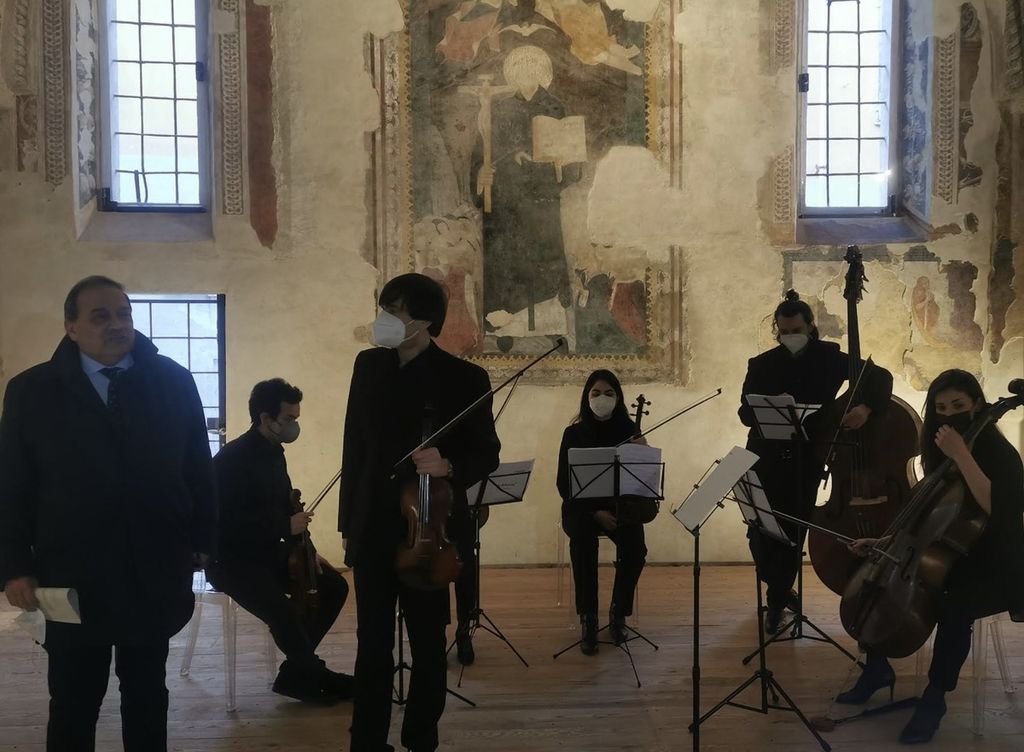 L'esecuzione di un breve concerto da parte di Guido Rimonda e di alcuni artisti della Camerata Ducale ha anche rivelato l'ottima acustica di un angolo davvero suggestivo.