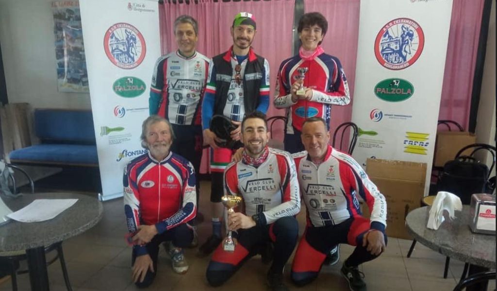 Domenica invece la squadra si è divisa in 3 tronconi: 7 compagni erano a Borgomanero per partecipare alla Cicloturistica Pro-logo “3° Memorial Carmelo Crobu”, manifestazione non agonistica di 63 km che ha visto il sodalizio vercellese far esordire il giovanissimo neo tesserato Mattia Sanzone, di 16 anni, nipote del celebre ed esperto nonno Piero Sanzone, colonna del Velo da tanti anni che quest’anno ha voluto rimettersi in gioco proprio per accompagnare il nipote nel mondo del ciclismo amatoriale. Per Mattia il premio del più giovane concorrente, mentre la società ha conquistato la terza posizione nella classifica riservata ai gruppi sportivi.