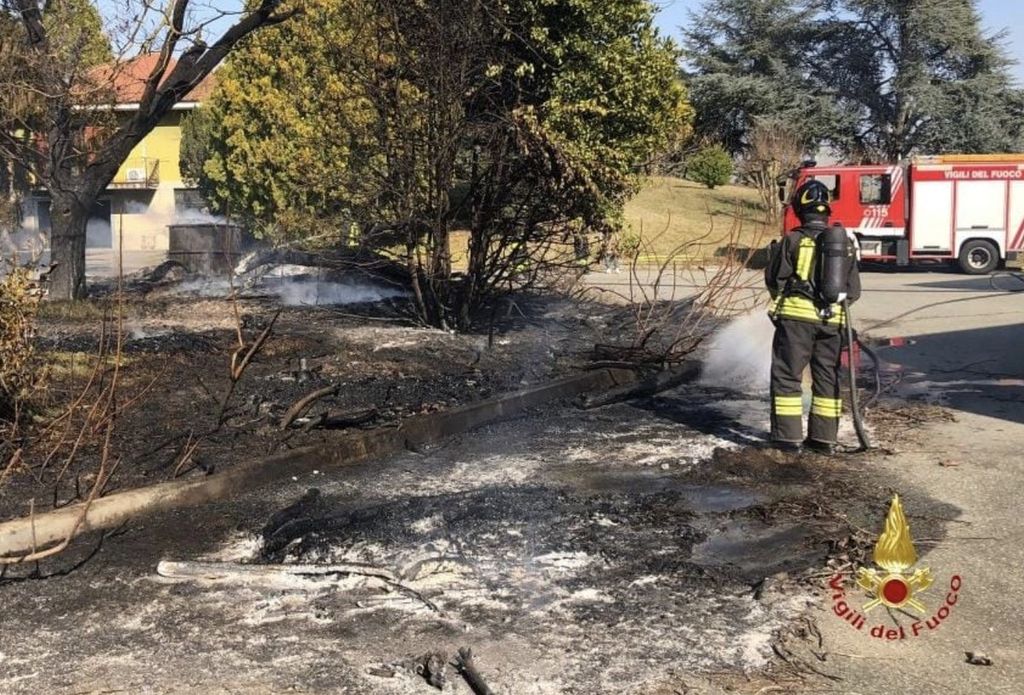 Un incendio di sterpaglie, scoppiato nel pomeriggio di sabato 26 marzo, ha richiesto l'intervento dei Vigili del Fuoco dopo che le fiamme avevano attinto una baracchetta in legno all'interno di un cortile privato ad Alice Castello.
