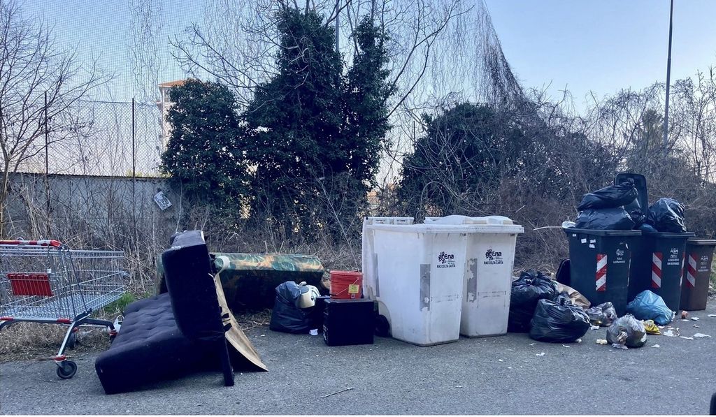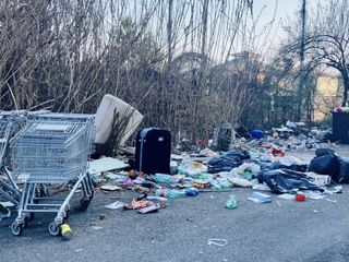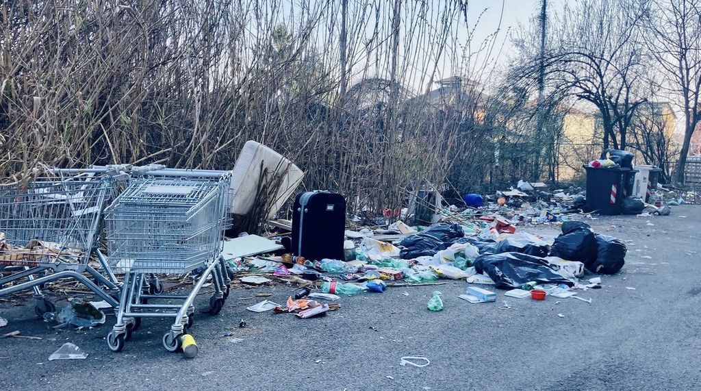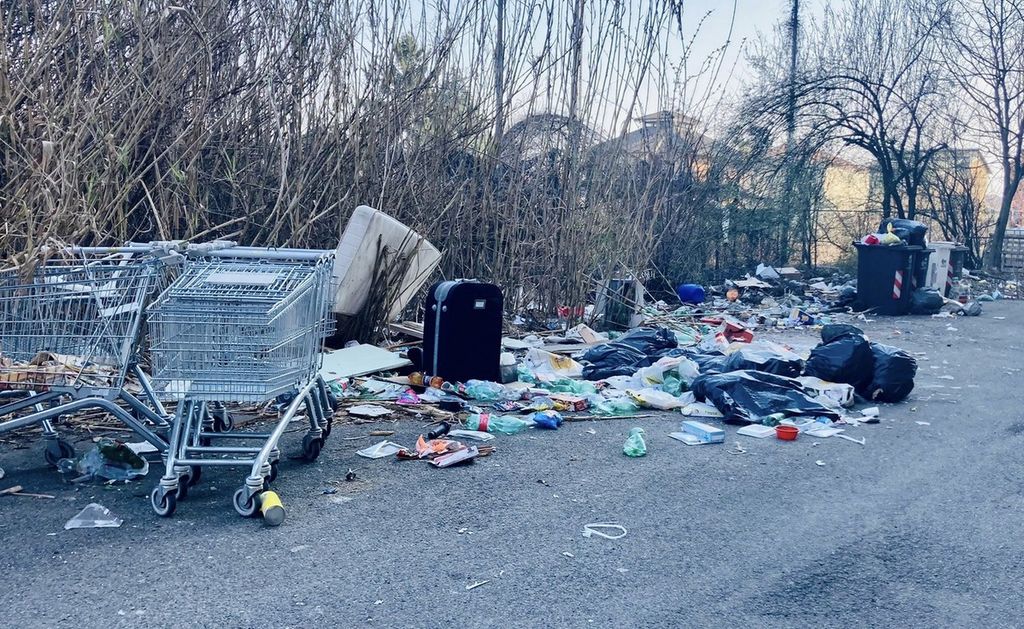 A pochi metri dai cassonetti, alcuni dei quali risultano regolarmente svuotati mentre altri sono sommersi dai sacconi neri, c'è di tutto: avanzi di cibo, cartacce, latte di vernice, una valigia, rifiuti speciali e ingombranti, un divano, l'immancabile materasso che spunta in ogni discarica abusiva della città. Sono ricomparsi pure i carrelli che, solo pochi mesi fa, erano stati rimossi a decine sempre dalla medesima area. Un'istantanea avvilente ma che ben racconta il degrado della zona.