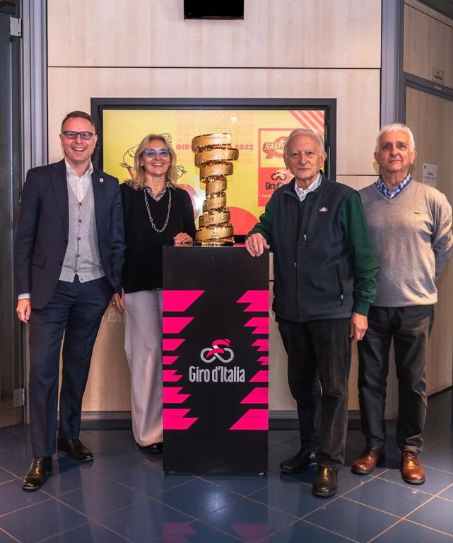 La presenza del “Trofeo Senza Fine”, l’iconica opera che premia il vincitore del Giro d’Italia, è stato il segno più tangibile dell’impegno assunto da Raspini per sostenere, come Partner Ufficiale per il triennio 2022/2024, una delle più amate manifestazioni sportive italiane, il Giro d’Italia e il Giro-E.