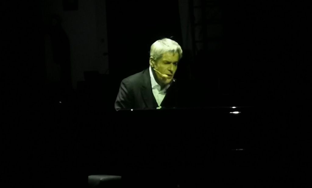 Tre ore di concerto tirate, senza un attimo di sosta, se non i momenti dedicati alle riflessioni e al dialogo con il pubblico. Puntualissimo, Claudio Baglioni sale sul palco del Teatro Civico alle 21. Con lui ci sono «12 note, quelle che ti consentono di creare qualsiasi tipo di musica», come dirà nel corso della serata, e tre strumenti: il pianoforte classico, con le sue note rigorose che guardano al passato, il piano elettrico con i suoni che fluttuano come aria e acqua nel presente, e il clavinova, con le sonorità che guardano al futuro. «E' una serata in cui mi muovo in circolo antiorario, dal futuro al passato, per fermare il tempo che passa», racconta al pubblico che riempie il Teatro Civico in ogni ordine di posti.