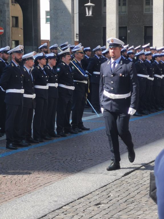 In piazza Zumaglini, i sindaci dei Comuni e delle Unioni di Comuni interessati, i familiari degli agenti, i consiglieri regionali e i rappresentanti delle forze dell'ordine hanno festeggiato un momento importante nella carriera professionale dei neo assunti.