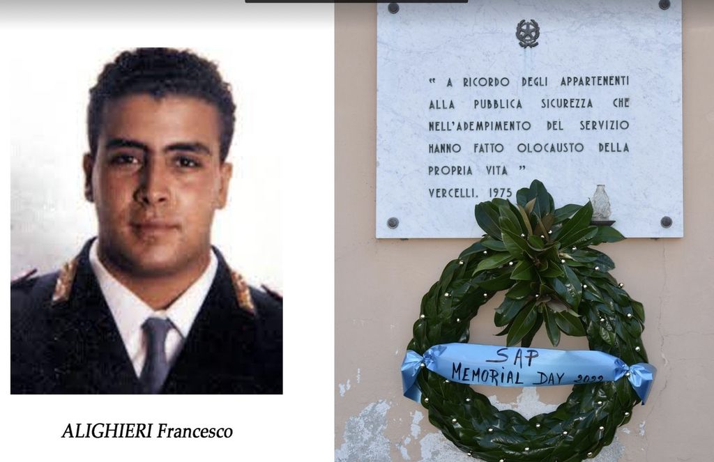 Oggi 11 maggio, il SAP Provinciale di Vercelli ha ricordato, con una deposizione di una corona al monumento ai Caduti all’interno della Questura di Vercelli alla presenza del Questore della Provincia di Vercelli, Maurizio Di Domenico, del vicario Anna Filomena Palmisano e di Elisabetta Alighieri, sorella di Francesco Alighieri poliziotto santhiatese caduto nell'adempimento del proprio dovere e vittima di mafia il 26 settembre 2008, insignito della Medaglia d’ Argento al Valor Civile.