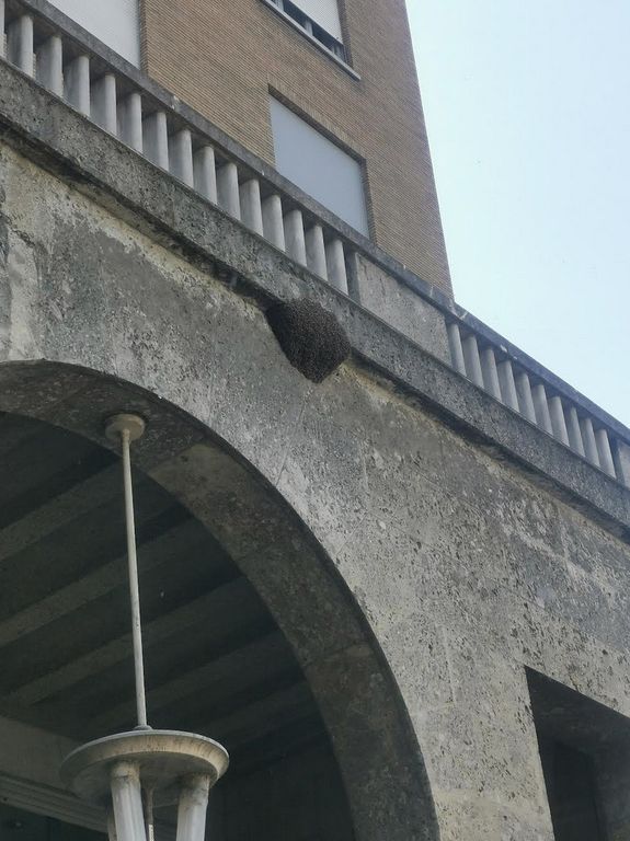 In questo periodo non è infrequente imbattersi nella sciamatura: quando le api "invadono" giardini o altri in luoghi facilmente accessibili è bene contattare un apicultore che si occupi di recuperare gli insetti e trasportarli nella zone in cui produce miele. In questo caso, vista la posizione particolare, ci hanno pensato i Vigili del Fuoco.