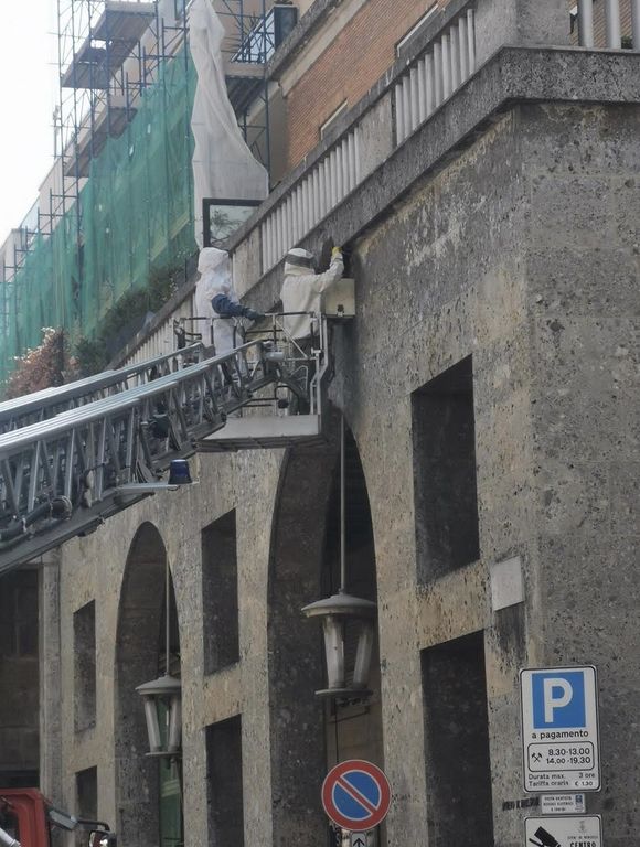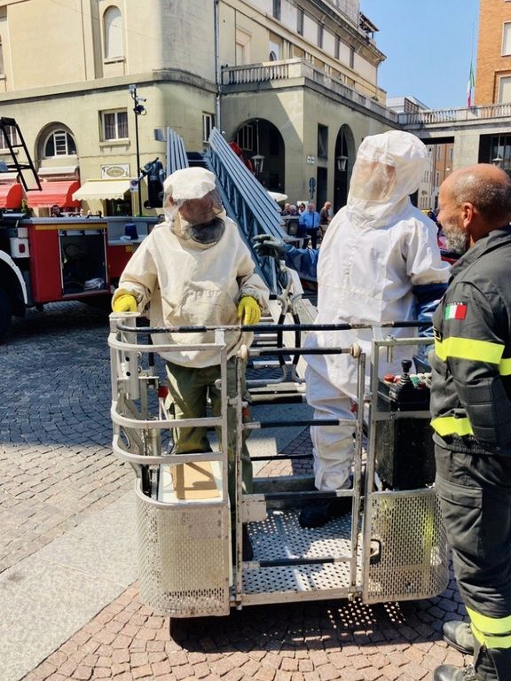 Prima dell'inizio della manifestazione, a scopo precauzionale, l'area sottostante è stata transennata con il nastro bianco e rosso mentre, a evento concluso, sono stati i Vigili del Fuoco a occuparsi di recuperare i preziosi insetti, salendo con l'autoscala sotto il terrazzo per poi trasferire le api in un'arnia.