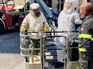 Prima dell'inizio della manifestazione, a scopo precauzionale, l'area sottostante è stata transennata con il nastro bianco e rosso mentre, a evento concluso, sono stati i Vigili del Fuoco a occuparsi di recuperare i preziosi insetti, salendo con l'autoscala sotto il terrazzo per poi trasferire le api in un'arnia.
