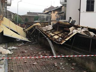 Una supercella temporalesca ha causato gravissimi danni, nel tardo pomeriggio di giovedì, a Trino. Intorno alle 19 vento fortissimo si è abbattuto su centro della cittadina, sradicando lamiere e coperture e causando gravissimi danni. In pochi minuti si è scatenato l'inferno: tettoie sollevate e trascinate in strada, tegole divelte, detriti ovunque.