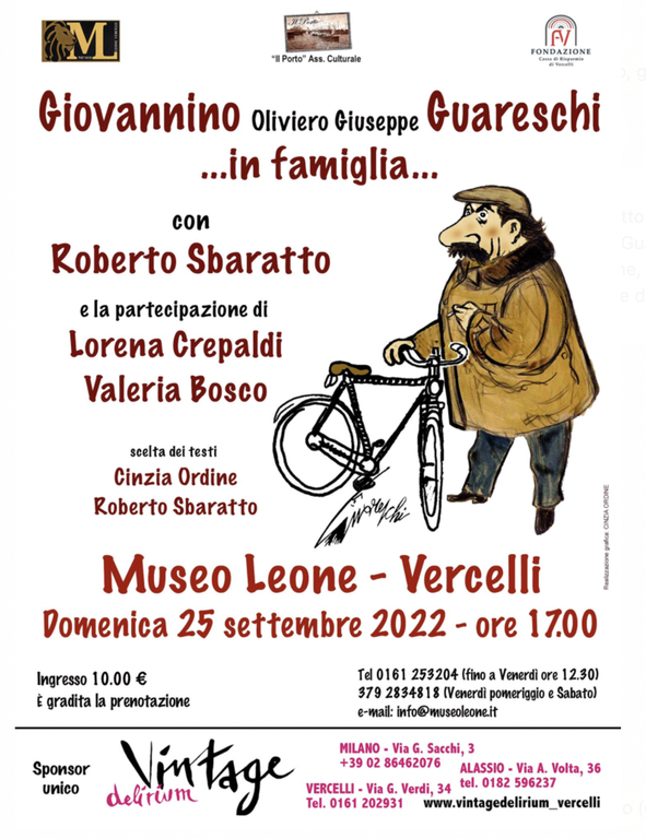 Domenica 25 settembre non sarà solo il giorno in cui si vota: Vercelli celebra (giustamente) Guareschi (uno degli scrittori più tradotti all'estero) con lo spettacolo teatrale de Il Porto dal titolo “Giovannino Oliviero Giuseppe Guareschi... in famiglia”.
