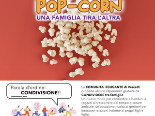 Famiglie con figli dai (grossomodo) 4 a 13 anni, famiglie che si incontrano: il titolo del progetto - Famiglie pop-corn – sa di spensieratezza. Lo scopo: contrastare la povertà educativa con dei momenti precisi e organizzati di condivisione. Ossia di incontro tra famiglie. Una famiglia A e una famiglia B. La famiglia B magari avrà qualche piccolo disagio: o economico, o di inserimento perché arrivati qui da poco.