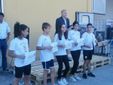 La campionessa e i piccoli atleti. Il presente e il futuro della scherma vercellese riuniti per un momento di festa, in cui tutti hanno il loro momento di gloria.