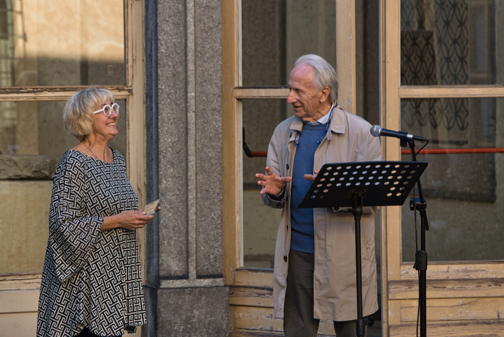 Il pubblico vercellese (tutto esaurito nel cortile del Museo Leone) ha apprezzato e, soprattutto, riso: come quando Guareschi racconta di avere inciampato sui gradini dell'ingresso di casa sua. Perché Perché stava leggendo il biglietto della moglie che, prima di partire per le vacanze, si era premurata di avvisarlo, appunto, di fare attenzione ai gradini.