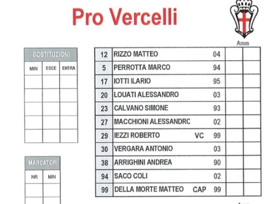 Priva di Cristini e Masi la Pro Vercelli si presenta con una difesa inedita: Iezzi e Macchioni terzini, Calvano e Perrotta centrali. A centrocampo, Paci propone Louati, preferito a Corradini, mentre conferma Arrighini al centro dell'attacco.