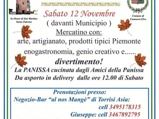 Sabato 12: davanti al Municipio, mercatino con arte, artigianato, prodotti tipici del Piemonte, enogastronomia e panissa cucinata dagli Amici della Panissa (da asporto dalle ore 12).