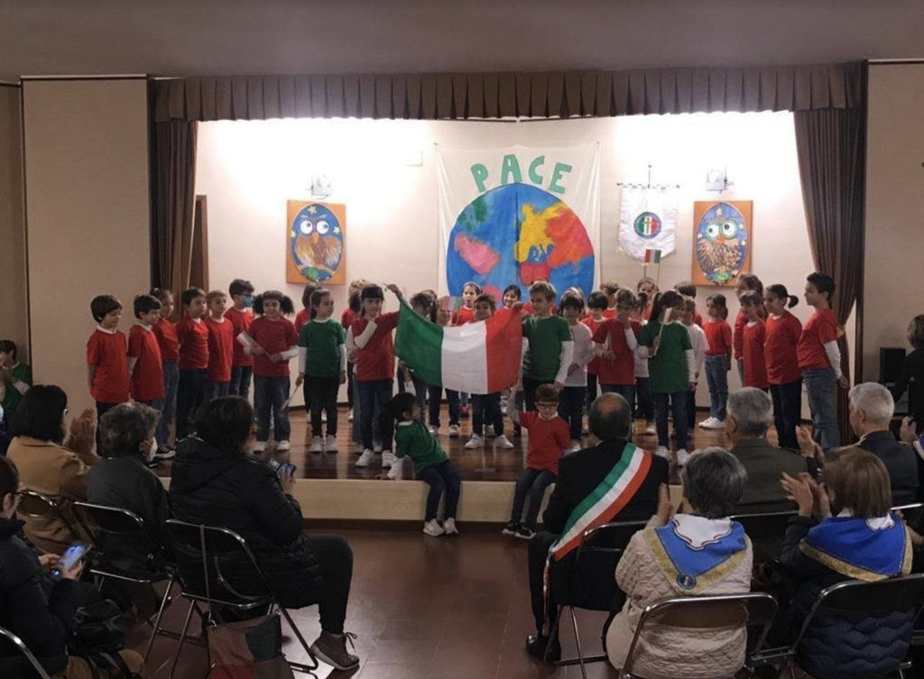 Quest’anno il titolo dello spettacolo è stato “la pace comincia da noi”, canti, letture e coreografie all’insegna dei nostri valori e del Tricolore.