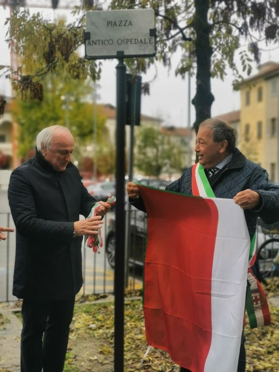 I lavori di riqualificazione si sono conclusi ormai più di sei anni fa e, da martedì pomeriggio, anche la posa della targa toponomastica sancisce l'avvenuta trasformazione del "parcheggione" in piazza Antico Ospedale. Uno spazio riqualificato, con le prestigiose architetture riportate all'antico splendore e le torri del Sant'Andrea sullo sfondo.