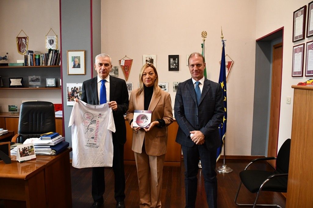 Sempre nella mattinata di venerdì, il Questore di Vercelli, Maurizio Di Domenico ha ricevuto la opresidente della Federazione Italiana Pubblici Esercizi di Vercelli, Donatella Bertolone, al fine di ribadire l’impegno della Polizia di Stato nei confronti del Progetto #Sicurezzavera. Bertolone ha fatto dono al Questore di una t-shirt realizzata da Confcommercio – F.I.P.E. in merito a tale Progetto, mentre il Questore le ha consegnato gli opuscoli informativi “Questo non è amore” che verranno distribuiti nei vari esercizi commerciali.