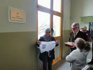 Sulla targa ci sono un atleta stilizzato, che salta vero la rete del volley, e la dedica "Palestra Paola Di Carlo Nasi". L'istituto Agrario rende omaggio all'ex insegnante e campionessa di pallavolo intitolandole che quello che, per tanto anni, «E' stato il suo "luogo" - come dice, commosso, il marito Maurizio Nasi - Non poteva esserci posto migliore per ricordarla».
