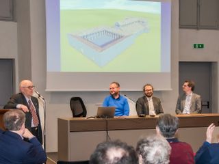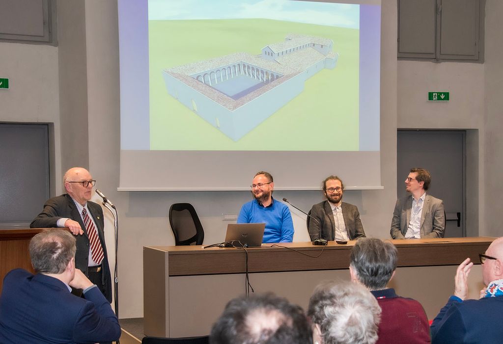 Marco Aimone, archeologo ed epigrafista, e Alessandro Tosini, architetto, hanno proposto una visita virtuale all’antica Basilica di Sant’Eusebio, grazie alle ricostruzioni tridimensionali dall’architetto Francesco Giacomo Panzeri, con riferimento alle in tavole a colori inserite all’interno del volume. Forte è stata l’emozione avvertita dal numeroso pubblico che gremiva l’ampio salone. Attraverso le immagini è stata mostrata l’esperienza di un ipotetico pellegrino che agli inizi del '400 visitava la città di Vercelli recandosi nella cattedrale con il ricordo di Eusebio e Teonesto: nella zona presbiteriale i suoi occhi restavano ammirati dallo splendore del grande crocefisso di epoca ottoniana. È stato ricostruito il pulpito marmoreo, finanziato dalla domina Parmensis Mabilia, realizzato da maestri di scuola antelamica, del quale sopravvivono poche sculture, oggi esposte al Museo Leone, collocato nella navata centrale, prima del presbiterio. Sono state riproposte la cancellata in ferro battuto esistente tra il coro e l’abside, realizzata da Zilibertus Faber, che nel 1180 aveva forgiato le grate intorno agli altari di Sant’Eusebio e Sant’Emiliano, e l’abside con mosaico del VI secolo a fondo blu con croce d’oro affiancata da Eusebio e Limenio, i primi due vescovi vercellesi, con l’immagine più piccola del vescovo Flaviano. La ricostruzione è stata volutamente schematica, poiché l’edificio non esiste più e molti elementi sfuggono ancora, ma si tratta di un’operazione intellettualmente onesta, che ingloba tutti i dati a disposizione, piacevole, senza però cadere nella tentazione di aggiungere dettagli.