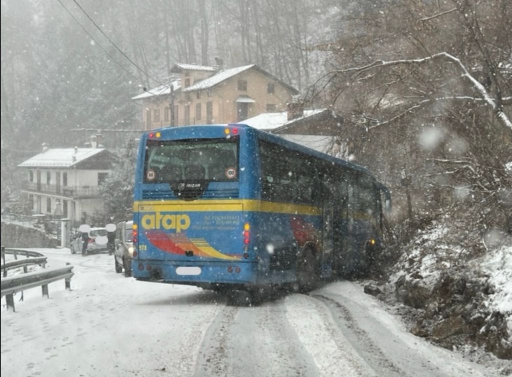 Per cause ancora da accertare, ma con molta probabilità per la neve che ha reso l'asfalto sdrucciolevole, tre pullman sono usciti di strada creando importanti problemi alla viabilità, si tratta di due turistici e uno di linea.