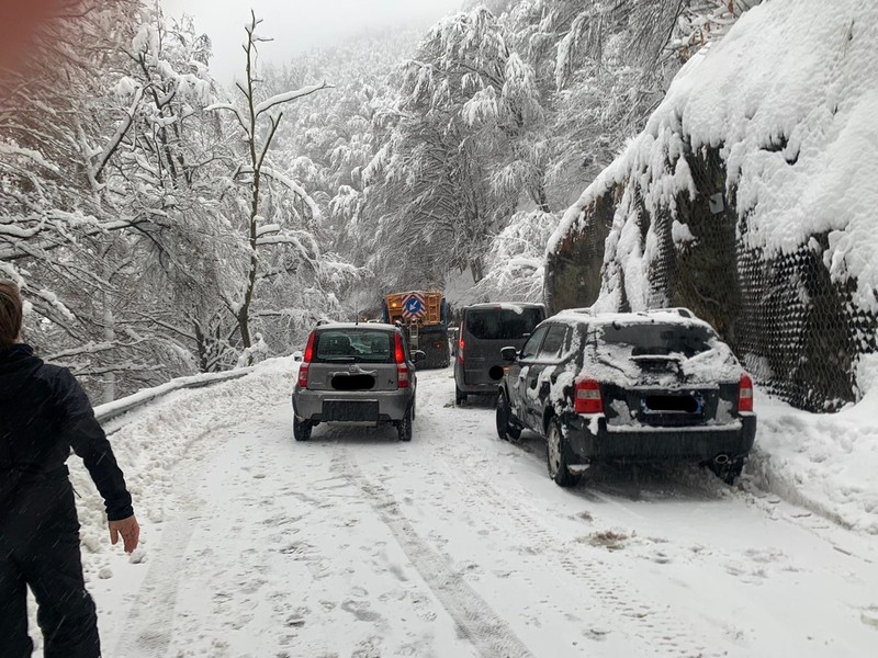 Molte le auto in coda con difficoltà a fare manovra per la strada stretta e per via della neve. Non sembra fortunatamente che siano rimasti coinvolti altri mezzi nè che ci siano feriti.