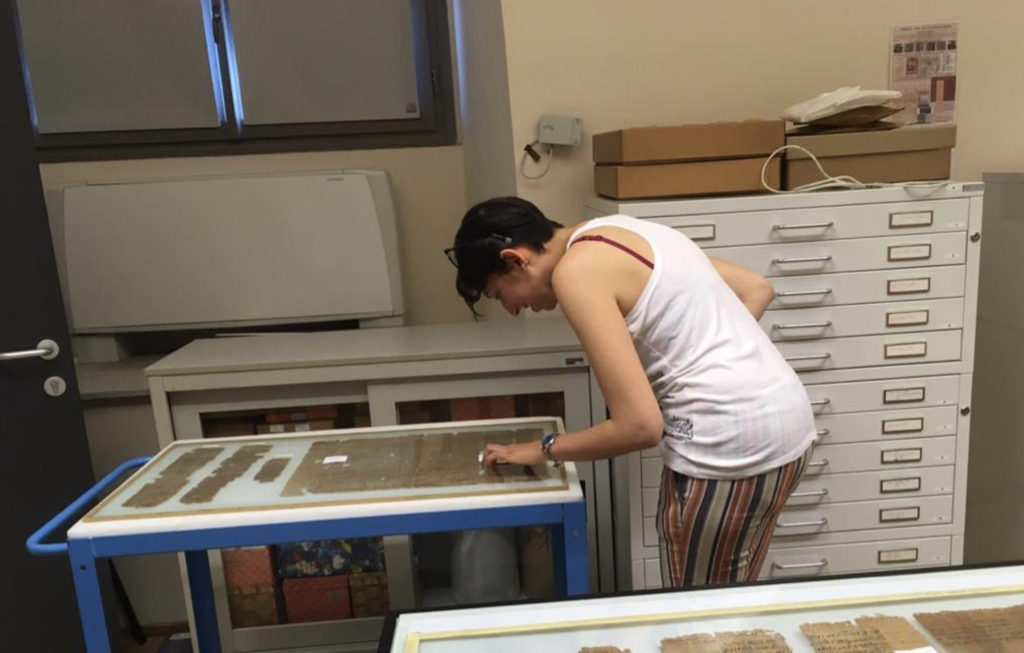 “La mia vita è sempre stata molto nomade. Dall’inizio dell’università ho infatti passato mesi interi lontana da casa per partecipare a scavi e ricognizioni archeologiche, sia in Italia che all’estero – spiega – ho sempre cercato di fare più esperienze possibili e diverse tra loro. Il mio primo scavo è stato al Tumulo della Regina a Tarquinia. Ho poi lavorato per tante campagne di scavo e di studio in Molise con l’Università di Leiden e a Tindari con l’Università di Torino. Nel 2017 ho partecipato alla mia prima missione in Egitto, all’Isola di Nelson ad Alessandria e ora sono membro della missione dell’Ifao che lavora nel sito Deir el-Medina a Luxor. Ho poi fatto varie esperienze a livello museale ma mi sono concentrata soprattutto sullo studio dei papiri e ho svolto dei tirocini per approfondire le mie conoscenze prima al Museo Egizio di Torino e poi alla collezione papirologica di Berlino”.
