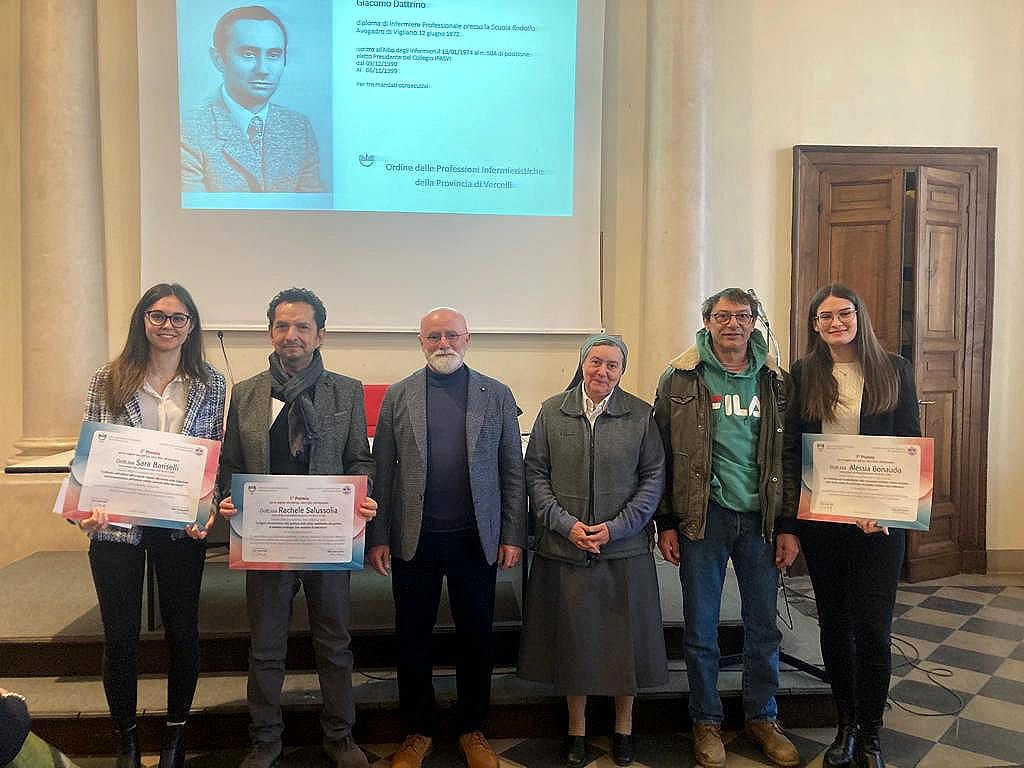 Cerimonia di premiazione per le tre migliori tesi dell'anno accademico 2021/22 della scuola per infermieri OPI alla memoria di Giacomo Dattrino, indette dalle ACLI Provinciali e dall' Ordine delle Professioni Infermieristiche di Vercelli. La cerimonia si è svolta nell'Aula Magna del Seminario Arcivescovile e ha visto prima classificata Rachele Salussolia; seconda Sara Bariselli e terza Alessia Bonaudo ricevere i riconoscimenti.