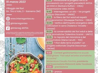 Nel pomeriggio sempre del 15 marzo, ci sarà la possibilità di partecipare all’evento di chiusura del progetto PSR BIOFIORI e alle ore 16.20 i presenti potranno assistere ad un confronto tra i partner dei due progetti coinvolti sulla filiera dei fiori eduli: ANTES e BIOFIORI.