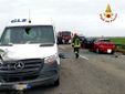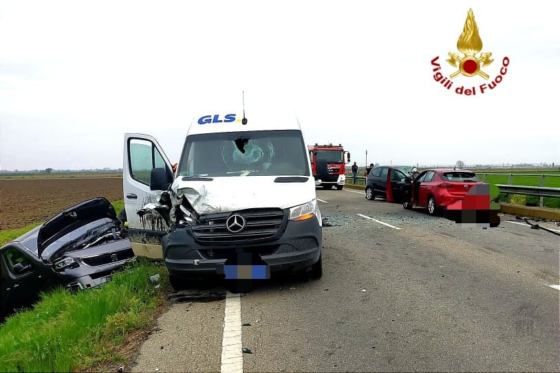 Una vettura semi distrutta finita in un campo. Altre due schiantate sui lati opposti della strada e un furgone in uso ai corrieri gravemente danneggiato. Intorno lunghissime code. E' uno scenario di devastazione quello che si è presentato ai primi soccorritori accorsi, poco dopo le 8 di venerdì mattina sulla provinciale 11 tra Cascine Stra' e San Germano.