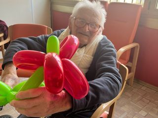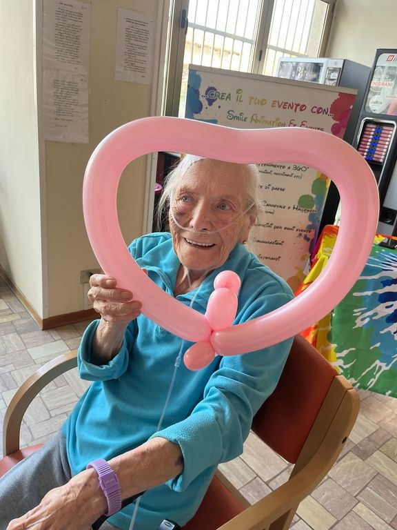 Lo scorso pomeriggio gli ospiti anziani della residenza ‘Don Dario Bognetti’ di Albano, gestita da Sereni Orizzonti, hanno partecipato all’attività organizzata in collaborazione con ‘Smile Animation’, un’associazione di volontari di Ivrea che propone attività di animazione, spettacoli di magia, spettacoli di bolle e attività con palloncini modellabili.
