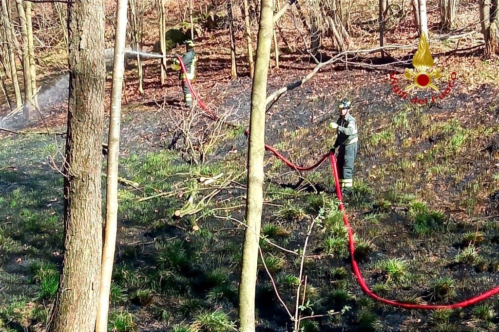 Incendio boschivo, sui monti di Cavaglia di Quarona: a innescare il rogo la caduta di un albero che, precipitando, ha tranciato alcuni cavi elettrici. Le scintille, unite al vento, hanno innescato l'incendio.