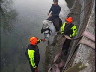 Per salvare il cavallo sono intervenuti i pompieri della squadra 61 Stura, che hanno utilizzato un'autogru, e i sommozzatori.