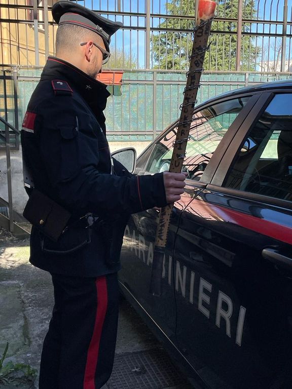 Il conducente della Fiat Punto è stato identificato in un pluripregiudicato 42enne senza fissa dimora, ben noto ai militari operanti. Si trovava in compagnia di altri due pregiudicati di 42 e 40 anni, entrambi residenti a Biella. La perquisizione al veicolo, subito attuata, ha consentito di rinvenire una mazza ferrata costruita artigianalmente, costituita da un solido bastone in legno, ricavato dal manico di un piccone, attorno al quale era stato avvolto del filo spinato: un’arma impropria che può essere micidiale, se usata per colpire qualcuno con violenza.