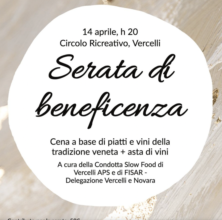 Assieme alla Delegazione #FISAR Vercelli e Novara, Rotaract Vercelli e Rotary Club Vercelli venerdì 14 aprile alle ore 20 si terrà al Circolo Ricreativo una serata di beneficenza per contribuire alla realizzazione di un orto sociale nell'ambito del progetto "10.000 orti in Africa" di Slow Food e un pozzo a Santa Cruz di Capoverde.