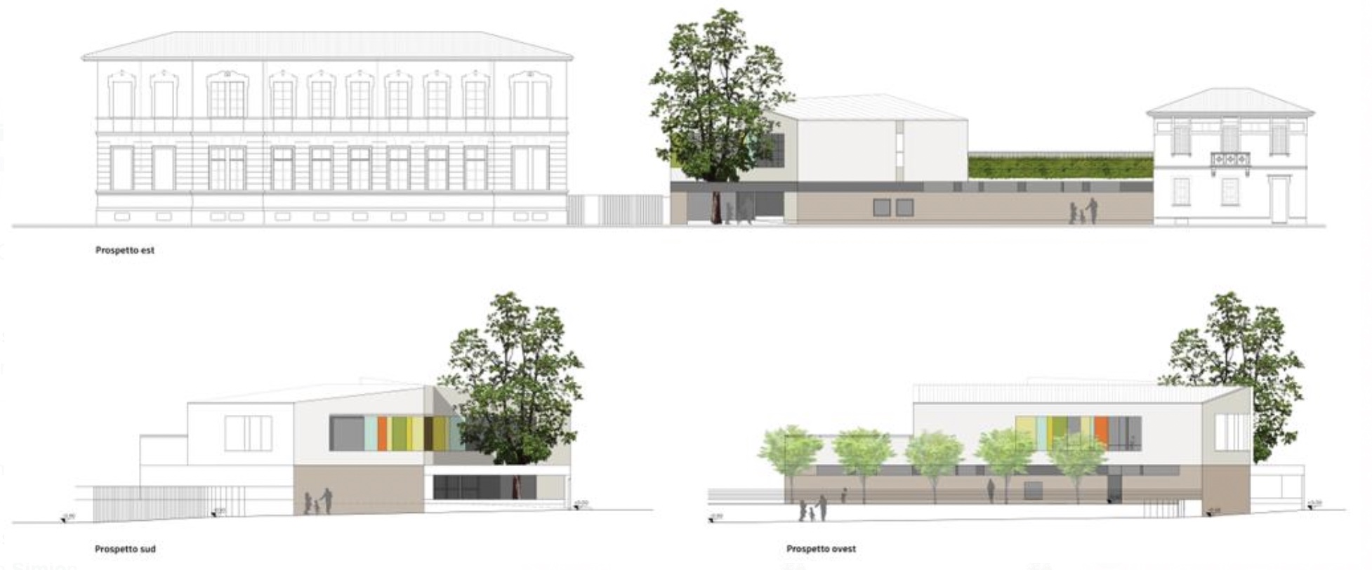 Alla Collodi i lavori prenderanno il via a giunto con l'abbattimento dell'edificio prefabbricato realizzato negli anni '70, che ospita alcune delle sezioni della materna: nell'area cortilizia che si affaccia su via Derna verranno anche rimosse tre piante, che verranno poi rimpiazzate con altrettante essenze poste a ombreggiare il retro della nuova scuola, mentre verrà mantenuto lo storico olmo, che diventerà parte integrante del nuovo porticato. L'edificio avrà una doppia manica su due piani e due ampi terrazzi superiori. Il tempo di realizzazione è di un anno circa.