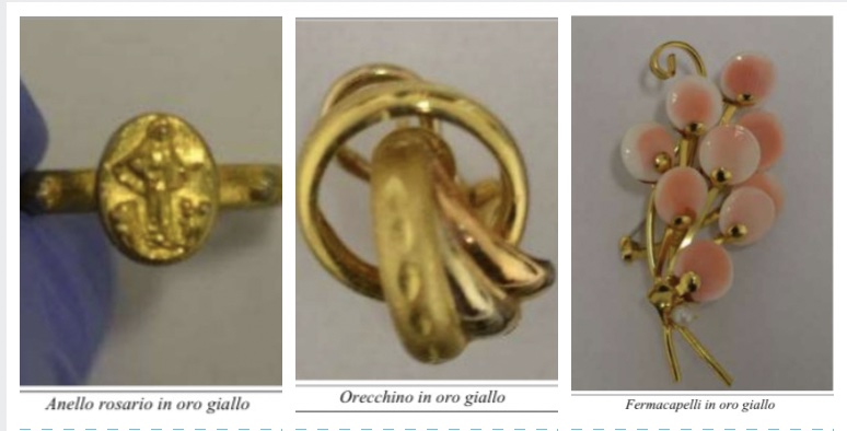All'interno della Golf sono state rinvenute mascherine chirurgiche, berretti, guanti, un cartellino con dicitura “Dipendenti Comunali – Addetto Sanificazione Covid-19”, nonché alcuni monili in oro probabilmente oggetto di furto.