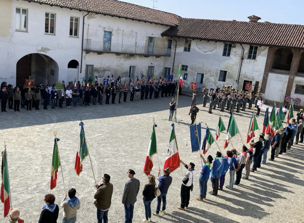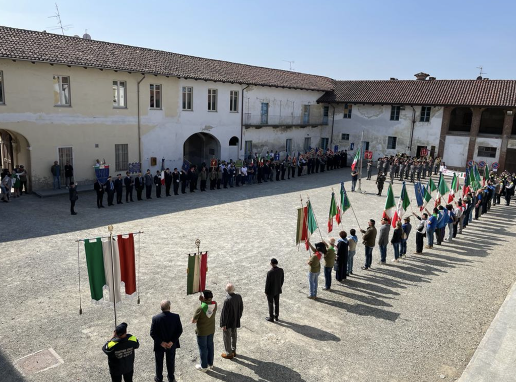 Tante anche le associazioni combattentistiche, d'arma e di Protezione Civile del vercellese e di diverse province del Piemonte che si sono riunite, rispondendo alla chiamata della Federazione di Vercelli e Biella dell'Associazione Nazionale Combattenti e Reduci e della Associazione Nazionale Famiglie Caduti e Dispersi in Guerra di Vercelli: “In questo cortile questa mattina ho la testimonianza che sul nostro territorio esistono ancora persone con valori profondi, valori che affondano le loro radici nel tempo, in un tempo in cui i nostri padri, i nostri nonni e bisnonni furono chiamati a combattere per difendere i confini della nostra nazione: confini che non furono solo difesi, ma che ridisegnati e tracciati con il loro sangue: un dono di libertà – ha affermato Simone Fossati, neo presidente della Federazione di Vercelli e Biella dell'Associazione Nazionale Combattenti e Reduci e profondo amante e conoscitore della storia - oggi ognuno di voi, collaborando con le amministrazioni, con le istituzioni e con le forze dell'ordine, tramanda i sacrifici di chi ci ha preceduto e ci ha lasciato, permettendo alle nuove generazioni di conoscerli e capire che le parole libertà, giustizia, pace e patria non sono cose astratte ma sono un dono da difendere: il dono più grande che un genitore può dare al proprio figlio. Questo è lo scopo e l'onere che tutte le associazioni qui presenti abbiamo. Ieri, oggi e domani: noi dobbiamo essere il legame che unisce queste tre parole”