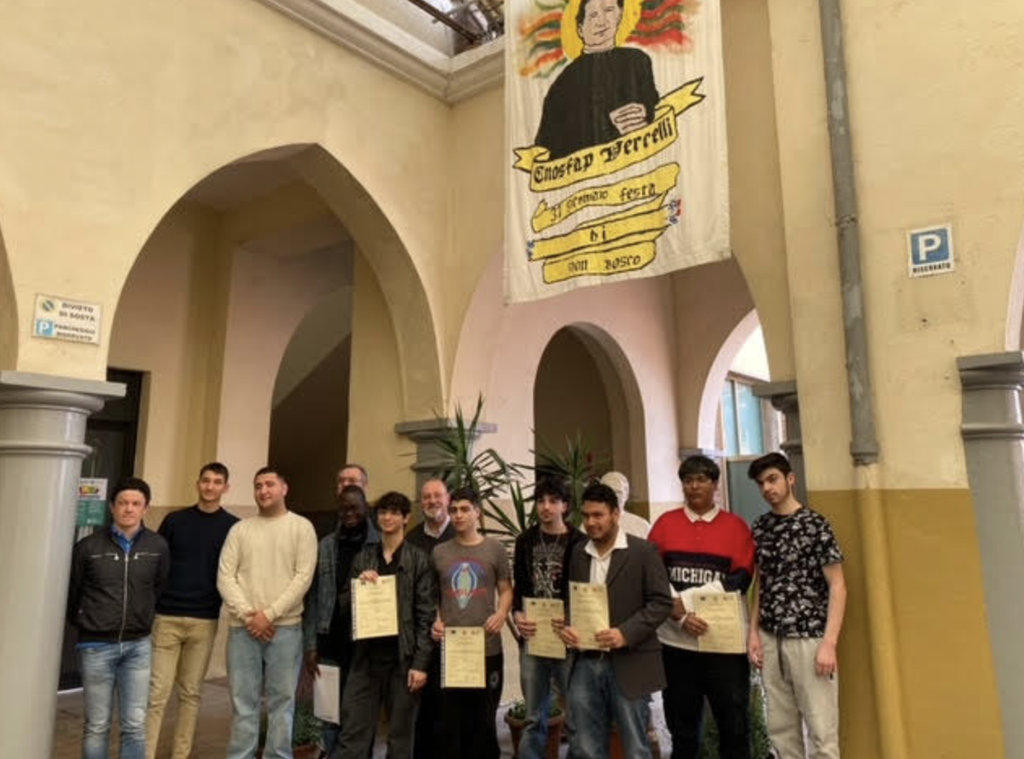 Domenica 7 maggio alle 11,30 si è svolta presso il cno-sfap Don Bosco di Vercelli la cerimonia di consegna dei diplomi e degli attestati di qualifica professionale che gli allievi hanno conseguito al termine dello scorso anno scolastico. Nel corso dell'incontro sono state consegnate anche delle borse di studio agli allievi più meritevoli. Erano presenti alla cerimonia il direttore del Centro, don Gabriele Miglietta e il direttore dell’opera salesiana vercellese don Guido Candela; presenti anche tantissimi formatori del Centro di formazione professionale che hanno contribuito a rendere vivace e gioioso questo bel momento di incontro programmato nel contesto del convegno annuale degli ex allievi.