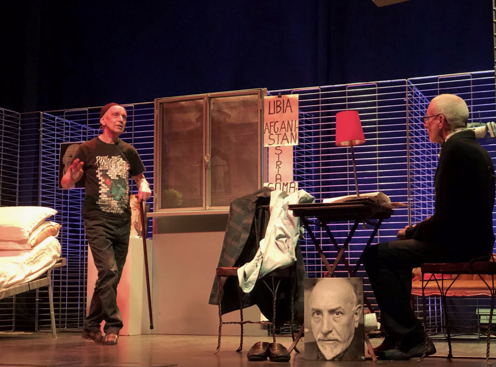 Voce, gestualità, musica, luci e ombre di una scenografia minimale ma efficace, sono calibrati perfettamente e costituiscono una cornice perfetta, senza alcun orpello, alla commovente esplorazione della vita, della vecchiaia, della solitudine che nessuna gabbia dorata può dissolvere. E soprattutto del significato ultimo della ricerca della felicità, che l’autore concentra nel monologo finale, in una riflessione tragica quanto necessaria, così lieve e così poetica che è in grado di diluirne il dolore.