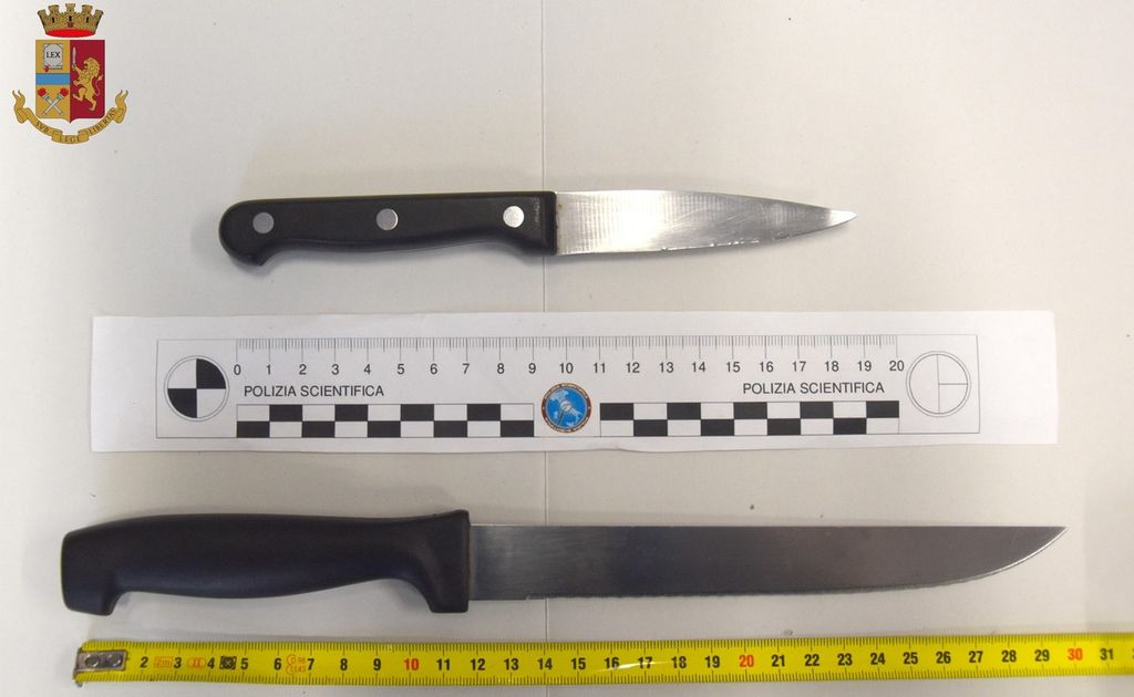 L’uomo, durante il controllo, ha manifestato ulteriori segni di insofferenza; accompagnato al uffici di polizia è stato trovato in possesso di due coltelli, della lunghezza complessiva di 30 e 19 centimetri.