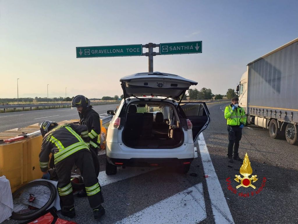 Ha perso il controllo della sua auto centrando in pieno lo spartitraffico nel bivio della A26 tra Gravellona Toce e Santhià, praticamente alle porte di Vercelli.