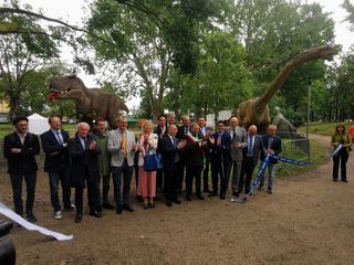 Taglio del nastro davanti ai dinosauri giganti per la 17° edizione della Fattoria in Città.