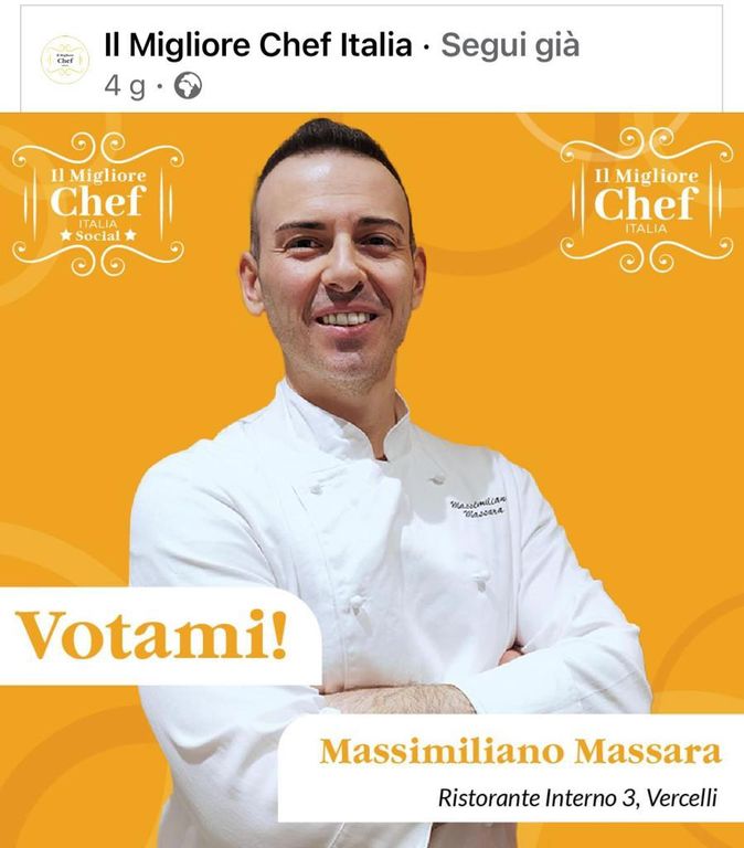 Massimiliano Massara, 37enne chef di Interno 3 (gastronomia ristorante di via Veneto) è in corsa per la terza edizione di “Il Migliore Chef Italia” contest in onda su Sky. E' l'unico piemontese selezionato fra i 30 finalisti. E la prossima settimana, martedì 20 giugno Vercelli torna a essere teatro delle registrazioni che andranno poi nel circuito televisivo la prossima stagione.