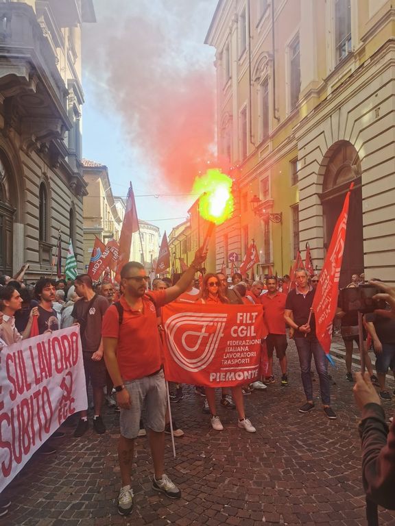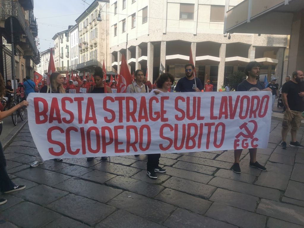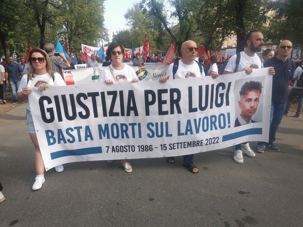 In fondo al corteo (che ha sfilato dalla stazione fino davanti alla Prefettura) una delegazione di lavoratori della Si.gi.fer di Bovorgovercelli, la ditta per cui lavoravano in cinque lavoratori deceduti. Tanto loro quanto i familiari delle vittime hanno partecipato in silenzio.