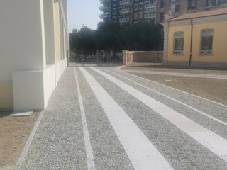 Nella nuova palazzina, chiara, luminosa, a impatto zero e riscaldata tramite pannelli fotovoltaici, trovano spazio quattro aule, 2 biblioteche (una sarà aperta anche alla città), un laboratorio e tutti i relativi servizi e spazi tecnici. All'esterno, il tratto di vicolo Olivero che la separava dall'ex Lavatoio è stato interdetto alla circolazione e chiuso da cancelli: il selciato posto lungo il camminamento esterno, ricorderà che quella era l'antica via di accesso alla città da Porta Milano.
