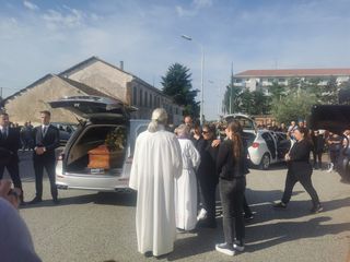«Giuseppe aveva il volto di un uomo buono - dice don Massimo Bracchi, celebrando il rito funebre - eppure anche lui era un guerriero: combatteva per la felicità delle sua famiglia, aveva scelto un lavoro duro, da fare di notte. Ora per lui è il tempo della pace nella luce di Dio. E per voi, che da un mese lo piangete, increduli per la sciagura che si è abbattuta sulla vostra famiglia, è il tempo di credere che il vostro Giuseppe vive in Dio, di farvi coraggio e di andare avanti nel suo ricordo».