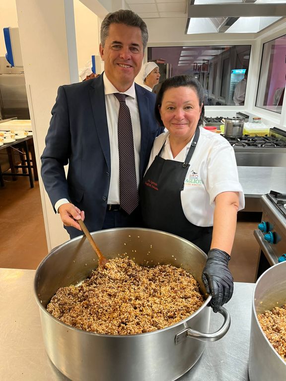 Grazie alla collaborazione nata con la Strada del Riso Veronese, la Fiera ha ospitato la delegazione vercellese: il presidente delle Provincia di Vercelli Davide Gilardino e il presidente della Strada del Riso Vercellese Massimo Biloni, entrambi con il proprio staff. Presenti anche Paolo Carrà, presidente Ente Nazionale Risi, e Lucio Parente, Prefetto di Vercelli. La delegazione vercellese è stata ospitata per promuovere il riso del proprio territorio e la ricetta tipica della tradizione locale, la panissa, preparata per l’occasione da Bruna Valdano dell’azienda agricola Scagliotti con riso Carnaroli Classico delle Grange e fagioli di Saluggia.