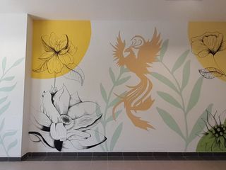 La generosa donazione in memoria di Michela Vercelli ha fatto fiorire il murales della Speranza all’Ospedale di Borgosesia. Il progetto si è concentrato nella rappresentazione di elementi, forme e colori che esprimessero serenità, equilibrio, forza e vitalità. Al centro è stata collocata una fenice, favoloso uccello sacro degli Egizi, che si riteneva rinascesse dalle proprie ceneri. Accanto alla mitica fenice sono stati disegnati dei fiori simbolici: il fior di loto, che rimanda alla rinascita e al superamento degli ostacoli della vita, infatti le sue radici crescono sott’acqua nel fango, e la stella alpina, la regina delle Alpi, metafora di purezza, amore, coraggio e resilienza per rappresentare la grande forza nel contrastare le avversità.