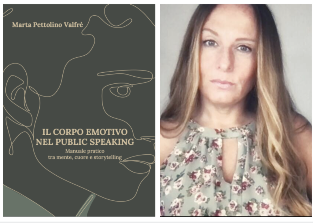 Sono alcuni capitoli che troviamo nel libro di Marta Pettolino Valfrè, “Il corpo emotivo nel pubblic speaking” (sottotitolo: Manuale pratico tra mente, cuore e storytellig), pubblicato recentemente da Franco Angeli edizioni.